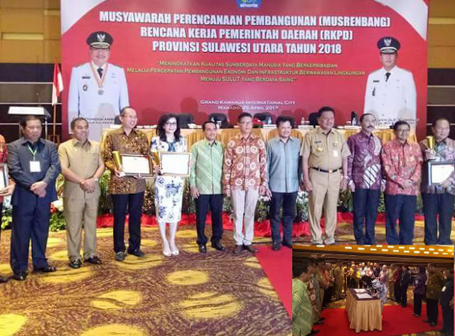 MINSEL, RedaksiManado.Com – Musrenbang Provinsi Sulawesi Utara tahun 2017, dalam rangka penyusunan Rencana Kerja Pembangunan Daerah (RKPD) Provinsi Sulawesi Utara tahun 2018, yang di laksanakan di Grand Kawanua Manado pada selasa 25/4, di hadiri oleh Bupati Minahasa Selatan Christiany Eugenia Paruntu SE, yang di dampingi oleh Sekda Minsel Danny Rindengan MSi. RKPD Provinsi Sulawesi Utara untuk tahun 2018 ini adalah tahun ketiga pelaksanaan RPJMD provinsi Sulawesi Utara tahun 2016-2018, dengan kebijakan di arahkan untuk memacu investasi dan infrastruktur untuk pertumbuhan dan pemerataan.