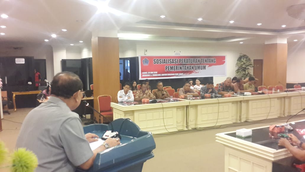 SULUT, RedaksiManado.Com -- Pemprov Sulawesi Utara melalui Biro Pemerintahaan dan Humas menggelar Sosialisasi Peraturan Tentang Pemerintahan Umum, di Ruang FJ Tumbelaka Kantor Gubernur Sulut, Kamis (28/6/2018).